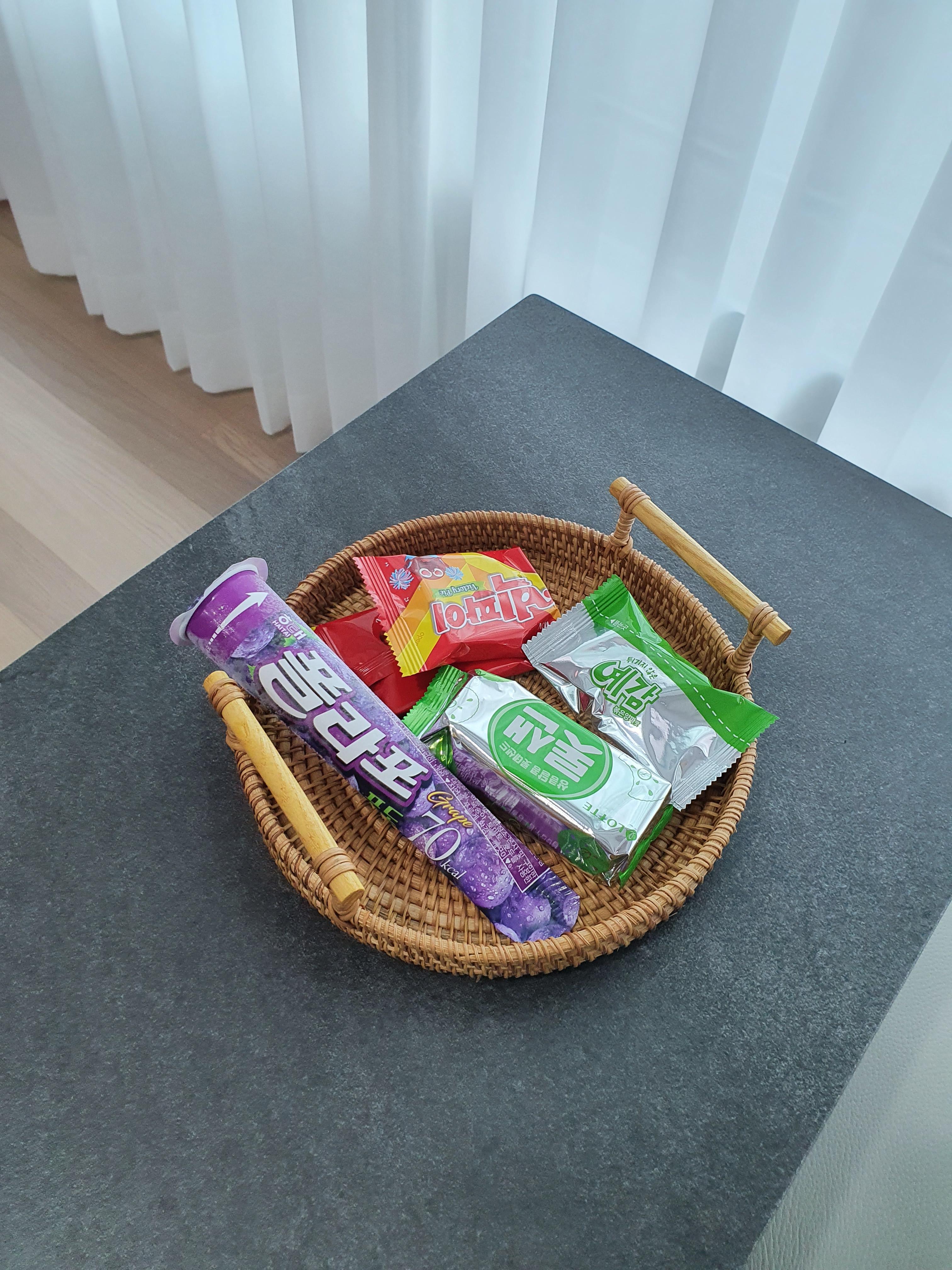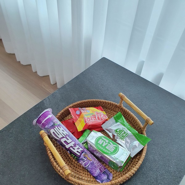 제가 음료는 잘 안마셔서 거실에 과자트레이로 주로 쓰는데 들고 옮기기도 편하고 참 이뻐서 마음에 들어요